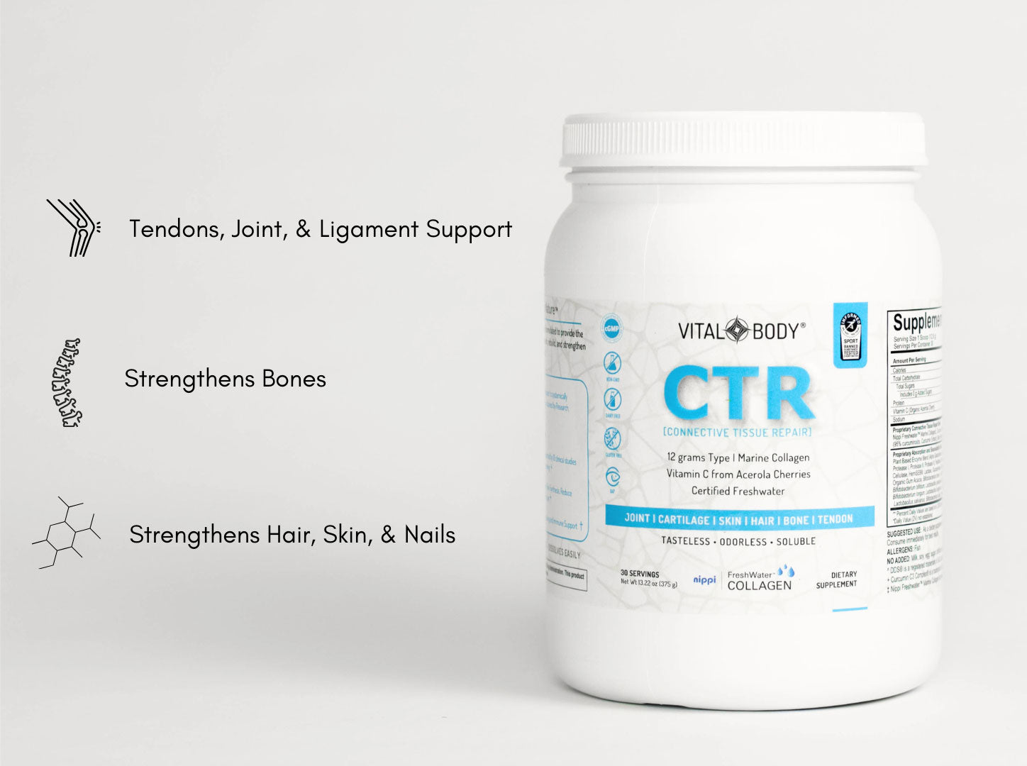 CTR (Connective Tissue Repair) - HYDROLYZED MARINE COLLAGEN PEPTIDES WITH WHOLE FOOD VITAMIN C - 30 Servings