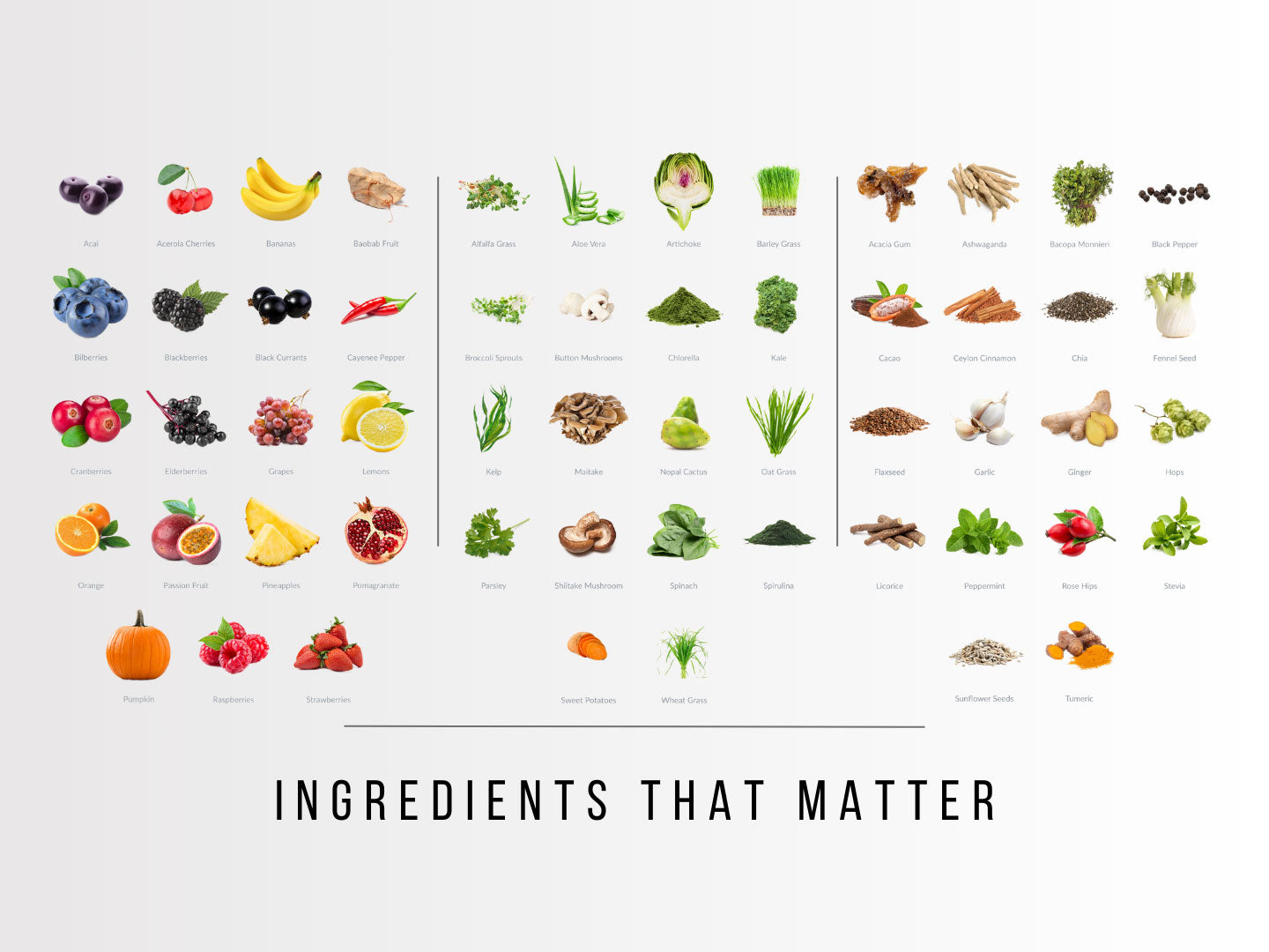 - Organic and Non-GMO fruits & vegetables (no synthetic vitamins or minerals)