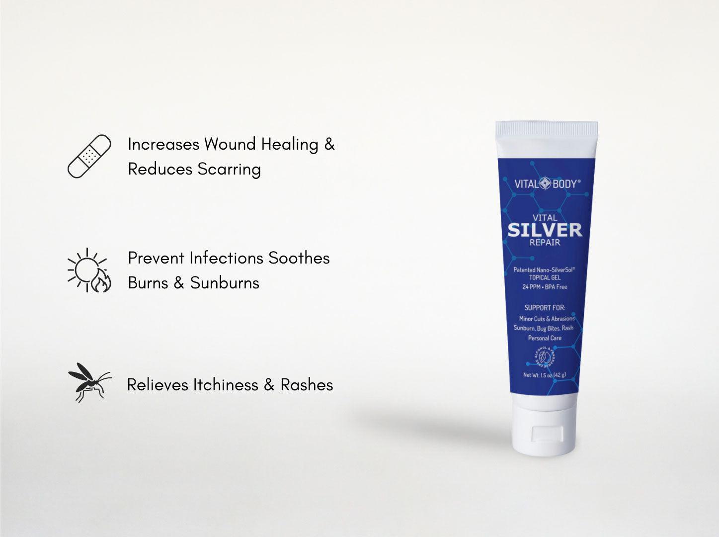 VITAL SILVER REPAIR - Nano Silver Therapeutic Topical Gel - Supports Natural Healing (1.5oz)